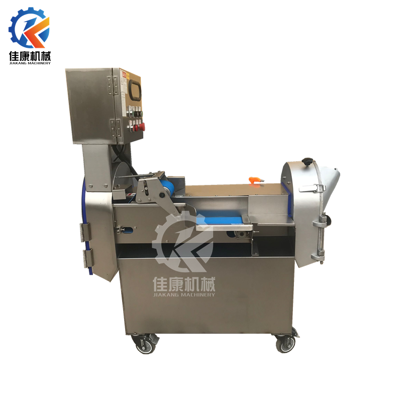 多功能切菜機可將根莖類蔬菜:如馬鈴薯、蕃薯、瓜類、竹筍、洋蔥、茄子以及葉菜類蔬菜:芹菜、大白菜、高麗菜、菠菜等蔬果類切成丁、片、絲條狀。多功能切菜機雙變頻器設計,分別控制皮帶與輸送帶來達到切割尺寸的調整。切菜機輸送慢,回轉刀快,為切細;輸送快,回轉刀慢,為切粗。輸送皮帶分為上下二組,下皮帶為輸送材料(耐腐蝕,易清洗),上皮帶為固定材料,切割更美觀及精確。與普通的切菜機相比,邁康切菜機的旋轉刀片和輸送皮帶沒有接觸,皮帶不磨損,也沒有皮帶碎料污染食物。此機器還可用于食品加工、速凍加工中心、包子餃子餡餅加工制作中心、連鎖快餐中央廚房等。